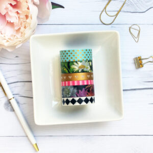 This washi sample is a perfect way to decorate or glam up your project. Each sample is wrapped around a laminated tag making it portable and perfect for a planner pocket or pouch. There’s no added bulk from washi rolls and samples allow you to travel with many of your favorite patterns.