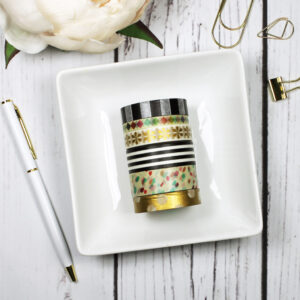 This washi sample is a perfect way to decorate or glam up your project. Each sample is wrapped around a laminated tag making it portable and perfect for a planner pocket or pouch. There’s no added bulk from washi rolls and samples allow you to travel with many of your favorite patterns.