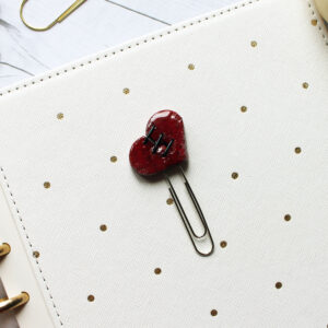 Handmade Clay Mixed Media Broken Love Heart Planner Paper Clip