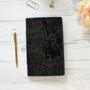 Handmade Half-Letter Size Undated Minimal Monthly Planner “Black Damask”