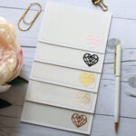 Cute, clear, adhesive pockets can be used on journals, planners, books, dashboards, folders, or anywhere you want to stash your goodies. Decorated with a simple heart vinyl decal, they’ll stick just about anywhere!