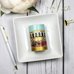 This washi sample is a perfect way to decorate or glam up your project. Each sample is wrapped around a laminated tag making it portable and perfect for a planner pocket or pouch. There’s no added bulk from washi rolls and samples allow you to travel with many of your favorite patterns.