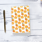 The notebook cover is printed on white cardstock and laminated. The outside covers are printed in the pattern shown and the cover insides are white. Inside the notebook, you will find 80 pages (forty (40) double-sided pages) printed on beautiful 24lb white paper. This dot grid notebook is staple bound which allows pages to lay-flat, making writing and decorating a breeze!