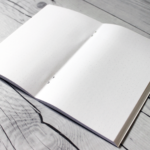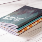 The notebook cover is printed on white cardstock and laminated. The outside covers are printed in the pattern shown and the cover insides are white. Inside the notebook, you will find 80 pages (forty (40) double-sided pages) printed on beautiful 24lb white paper. This dot grid notebook is staple bound which allows pages to lay-flat, making writing and decorating a breeze!