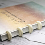 This planner is bound by custom designed 3/4″ white 3D-printed discs which allows pages to lay-flat, making writing and decorating in your planner a breeze! Discs are printed by myself, in my home, using 3D technology and PLA material.