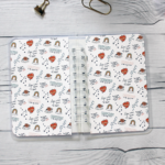 The cover of this sticker book is a rigid, durable plastic cover. The design is printed on matte white sticker paper. Inside the sticker book, you will find 60 pages (thirty (30) double-sided pages) high quality, coated release paper. When you’re ready to use your stickers, simply peel them off the pages and stick them wherever you like! Plus, the 3/4″ white metal wire-o binding allows pages to lay-flat so you can flip through easily to see your collection.
