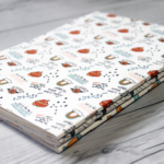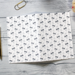 The sticker book cover is printed on white cardstock. The outside covers are printed in the pattern shown and the cover insides are white. Inside the sticker book, you will find 60 pages (thirty (30) double-sided pages) coated paper. When you’re ready to use your stickers, simply peel them off the pages and stick them wherever you like!