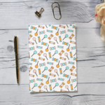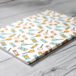 The sticker book cover is printed on white cardstock. The outside covers are printed in the pattern shown and the cover insides are white. Inside the sticker book, you will find 60 pages (thirty (30) double-sided pages) coated paper. When you’re ready to use your stickers, simply peel them off the pages and stick them wherever you like!