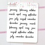 You’ll have loads of fun decorating your planners, calendars or bullet journals with these script stickers. These stickers will fit many different planners including Erin Condren, Happy Planner, Passion Planner, Hobonichi and many more!