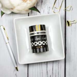 This washi sample is a perfect way to decorate or glam up your project. Each sample is wrapped around a laminated tag making it portable and perfect for a planner pocket or pouch. There’s no added bulk from washi rolls and samples allow you to travel with many of your favorite patterns.
