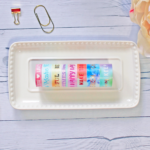 This washi sample is a perfect way to decorate or glam up your project. Each sample is wrapped around a laminated tag making it portable and perfect for a planner pocket or pouch. There’s no added bulk from washi rolls and samples allow you to travel with many of your favorite patterns.